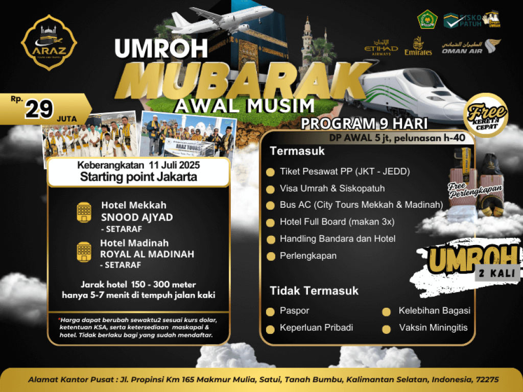 Umroh Awal Musim Juli – Mubarak (9 Hari)