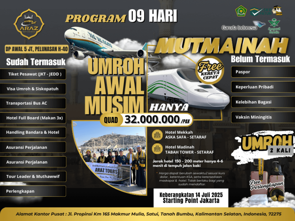 Umroh Awal Musim Juli – Mutmainah (9 Hari)
